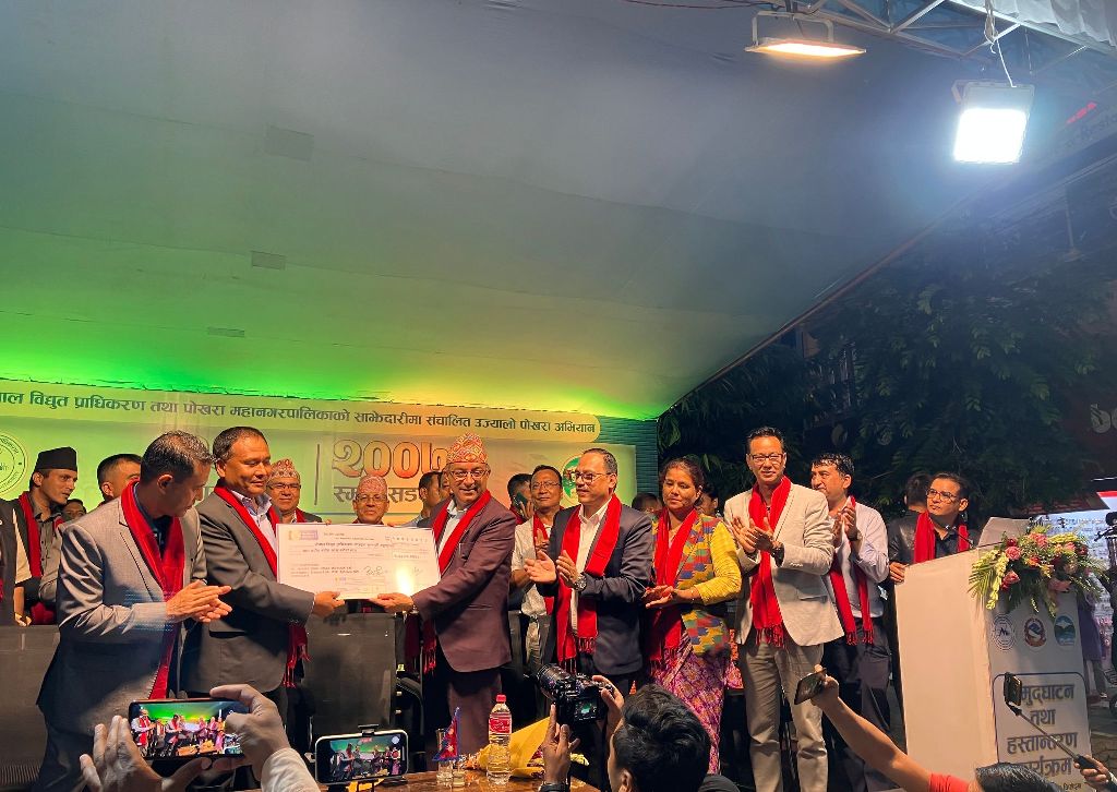 पोखरा महानगरपालिका प्रमुख धनराज आचार्य र प्राधिकरणका कार्यकारी निर्देशक कुलमान घिसिङले आइतबार पोखराको नयाँ सडकमा गरिएको कार्यक्रममार्फत जडान गरिएका हाइमास्ट र सडक बत्तीको संयुक्त रुपमा उद्घाटन गरेका हुन् ।