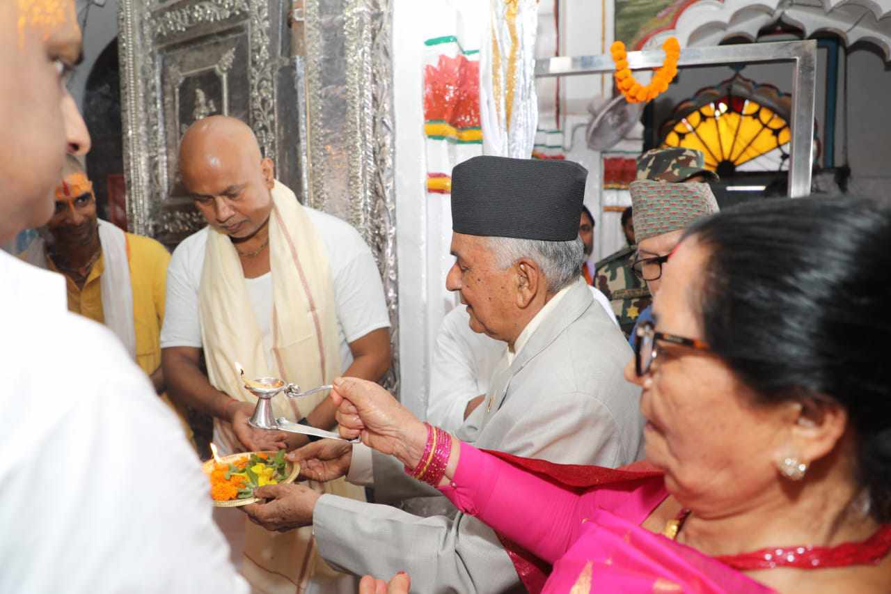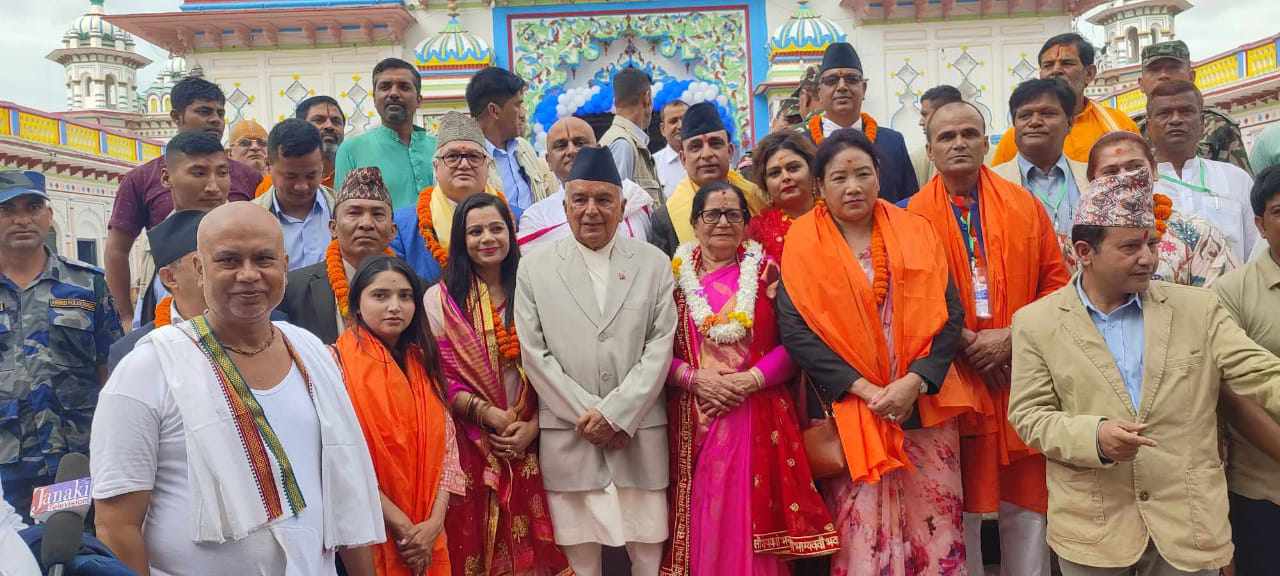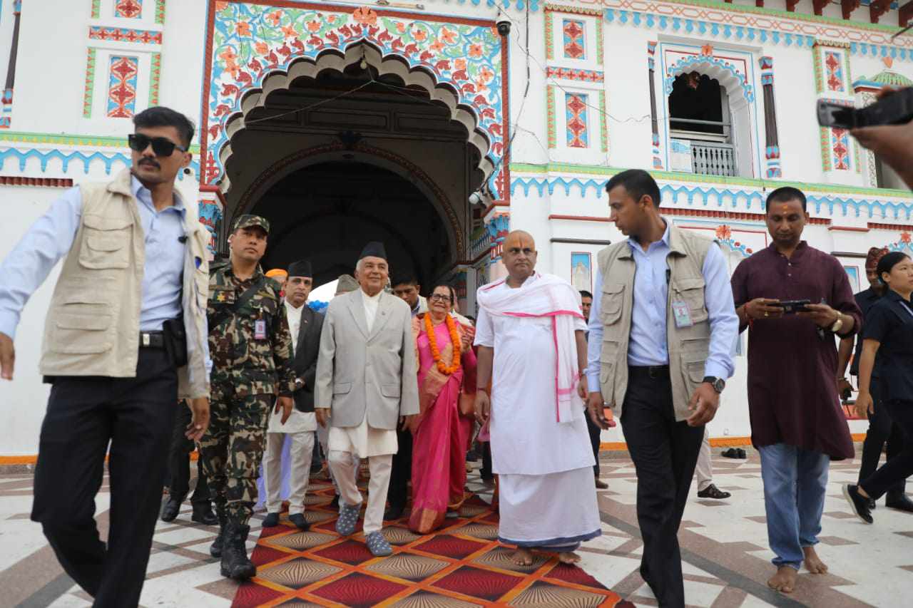 जनकपुर । राष्ट्रपति रामचन्द्र पौडेलले सोमबार यहाँस्थित जानकी मन्दिरको दर्शन एवं पूजाआजा गरेका छन् । राष्ट्रपति भएपछि पहिलोपटक जनकपुर आएका राष्ट्रपति पौडेलले प्रसिद्ध जानकी मन्दिरको दर्शन एवम पुजा अर्चना गरेका हुन् ।