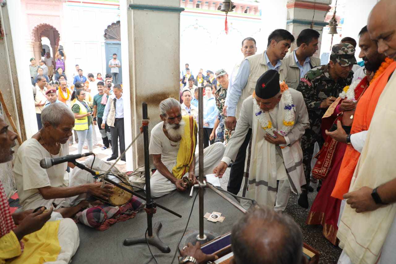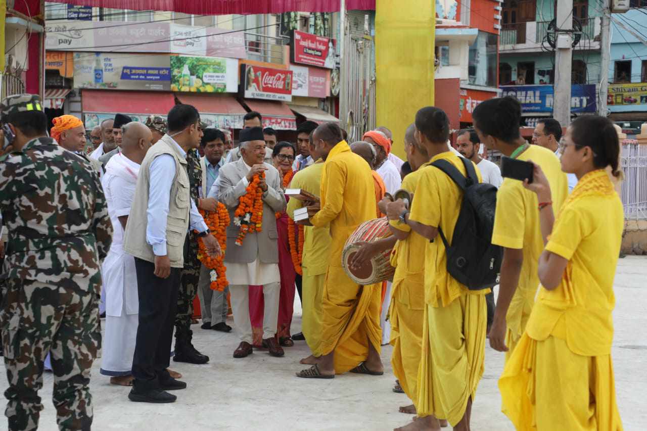 उनी अखण्ड किर्तन, दीप प्रज्जवलन तथा आरतीमा सहभागी थिए । राष्ट्रपतिलाई जानकी मन्दिरमा मूल महन्त रामतपेश्वर दासले स्वागत गरे ।