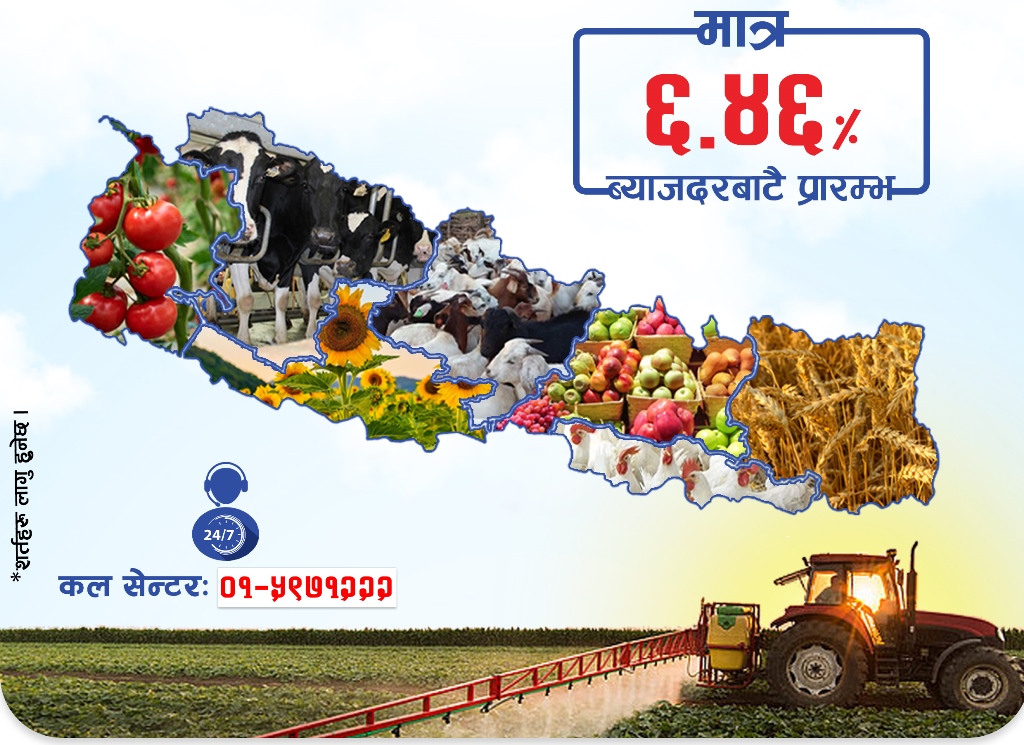 काठमाडौँ । नेपाल बैंक लिमिटेडको सरल कृषि कर्जा योजना ल्याएको छ । कृषकहरुको मेहनत र उज्जवल भविष्यको लागि सहज र सहुलियतपूर्ण ब्याजदरमा कर्जा सुविधा मार्फत आर्थिक सहयोग प्रदान गर्ने उद्देश्यले नेपाल बैंकले “नेपाल बैंक सरल कृषि कर्जा” ल्याएको हो ।