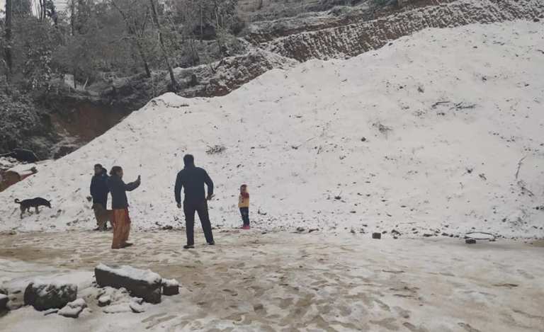 फागुन १६, भक्तपुर । १२ वर्षपछि हिउँले काठमाडौं घेरियो  । भक्तपुरको नगरकोट, चाँगुनारायण, सुडाल, ताथली, चित्तपोल, नंखेल, सिपाडो, नलिन्चोक, गुण्डु, रानीकोट, घ्याम्पेडाँडालगायतका क्षेत्रमा हिमपात हुँदा चिसो बढेर जनजीवन प्रभावित भएको छ । भक्तपुर, मध्यपुर थिमि, चाँगुनारायण र सूर्यविनायक नगरपालिकाका शहरी क्षेत्रमा समेत हिमपात भएको छ । उपत्यकाका काठमाडौं र ललितपुरमा समेत हिमपात भएको छ । हिमपातका कारण नगरकोट, सुडाल, रानीकोट लगायतका जिल्लाका पर्यटकीय क्षेत्रमा बिहान यातायात समेत सञ्चालन हुन सकेनन् ।